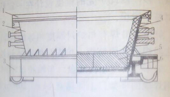 位于爐底上部的爐體為爐殼,爐殼內(nèi)側(cè)砌有耐火材料爐襯,爐殼的形狀可做成圓柱形的。截錐形的或圓柱一截錐形的。為增加剛性,爐殼上可焊制垂直或水平的筋板,爐殼中部有用30mm厚鋼板焊成的方槽形托圈,內(nèi)附夾層通冷卻水,托圈上裝有可使爐體轉(zhuǎn)動的耳軸。