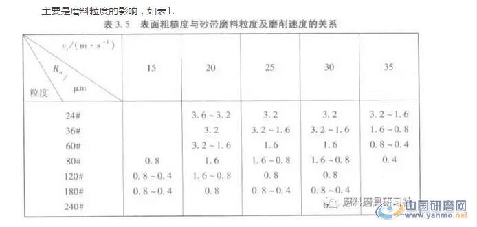 主要是磨料粒度的影響,如表1.